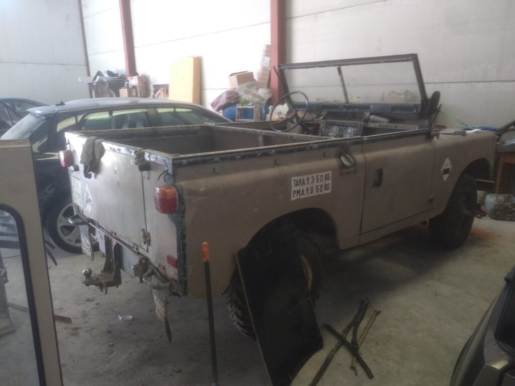 En este proceso, me llamó un primo, que si quería un Land Rover corto, que tenía su jefe estorbandole en la nave. Ni corto, ni perezoso, fui a verlo, sin caja de cambios, pintado a brocha, con más mierda que el rabo de un oso, pero tras un rato de negociación, era el feliz poseedor de un destartalado 88 2a de 1971 a un precio casi de aldea.